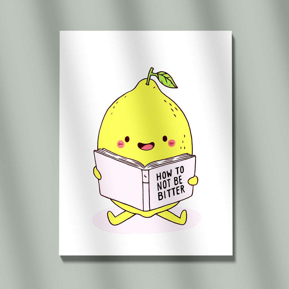 Cute And Humorous Digital Illustration Of A Happy Lemon Character Sitting Down To Read A Book Titled 'How To Not Be Bitter'