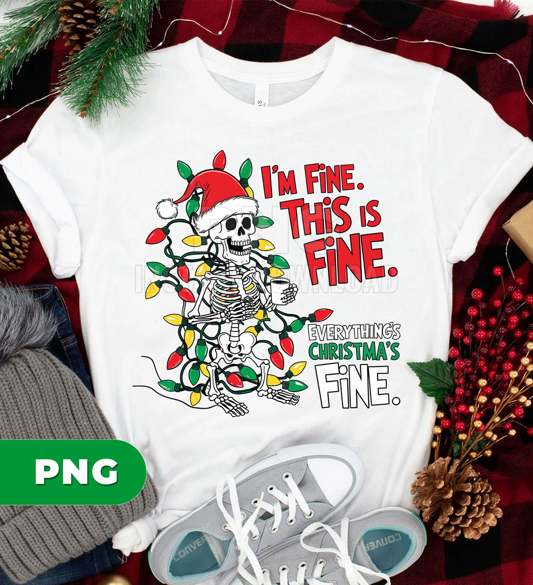 Christmas Skeleton PNG, Funny Skeleton Christmas Lights Clipart, I'm Fine This Is Fine PNG, Santa Hat Skull, Holiday Humor, Merry Christmas