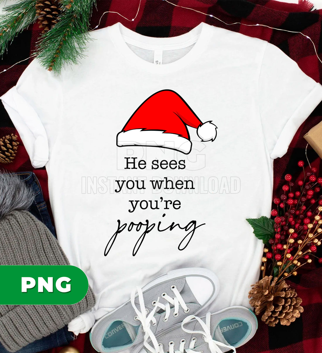 Funny Christmas Pooping Sign PNG, Santa Bathroom Humor Quote, He Sees You When You’re Pooping, Naughty Xmas Wall Art Sublimation PNG