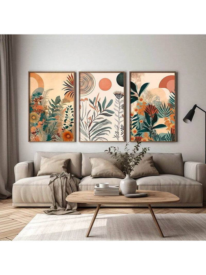 Enhance your living space with this elegant Boho Floral Poster Set. Each set includes three mid-century modern wall art pieces, measuring 19.