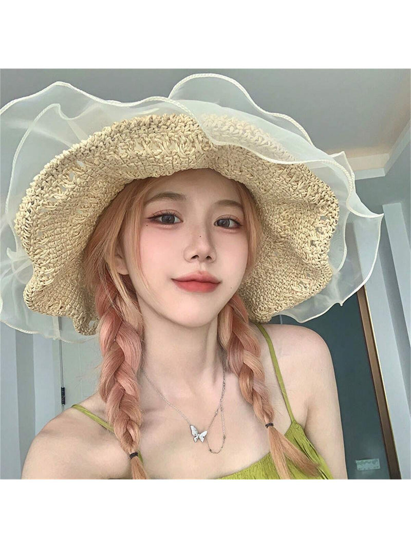 1. Summer Chic: Women's Ruffled Lace Detail Weaved Hat for Picnic & Beach Vacation
