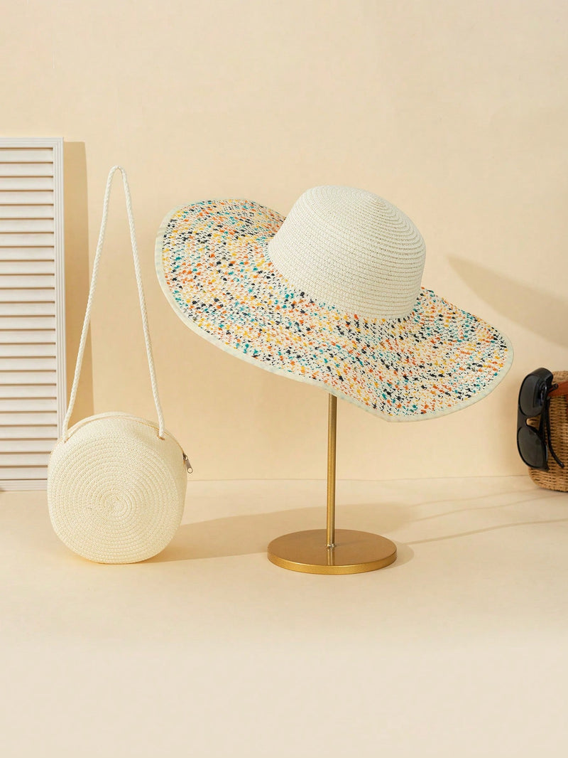 10. Beach Chic Essentials: Ivory Wide Brim Sun Hat and Straw Bag Set