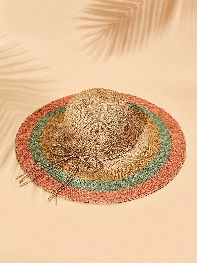 Introducing the Rainbow Stripe Bicolor Bowknot Woven Hat - the perfect vacation accessory! Made with vibrant rainbow stripes and a stylish bowknot detail, this hat adds a pop of color to any outfit while providing essential sun protection. You'll feel confident and fashionable on all your travels.