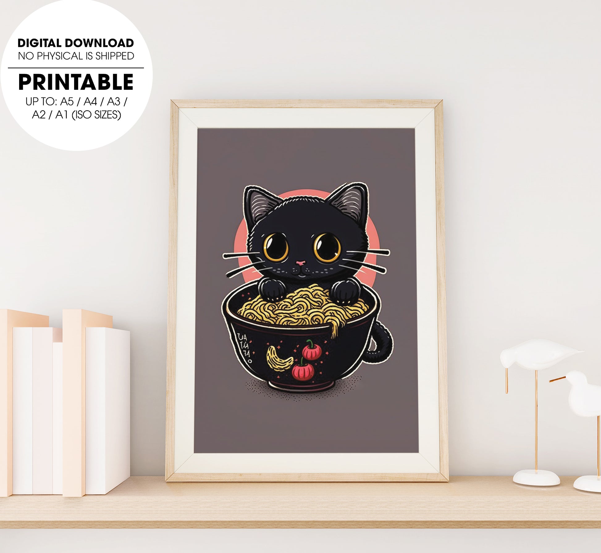 3. Cute Kawaii Black Cat Kitten Ramen, Cute Kitten Love Japanese Noodles, Poster Design, Printable Art