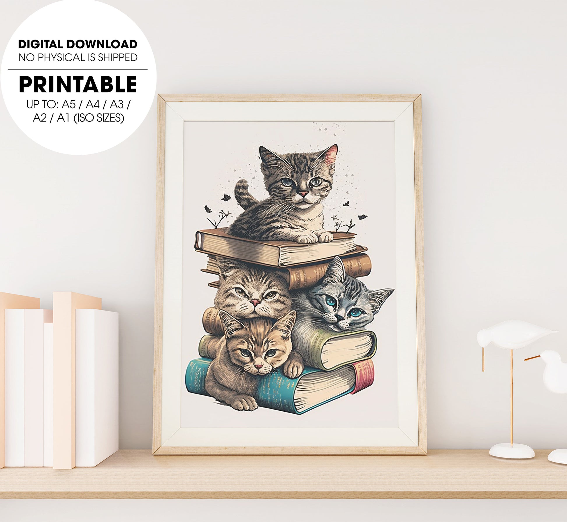 10. One Tall Stack Of Cats And Books, Cat Bookworm, Poster Design, Printable Art
