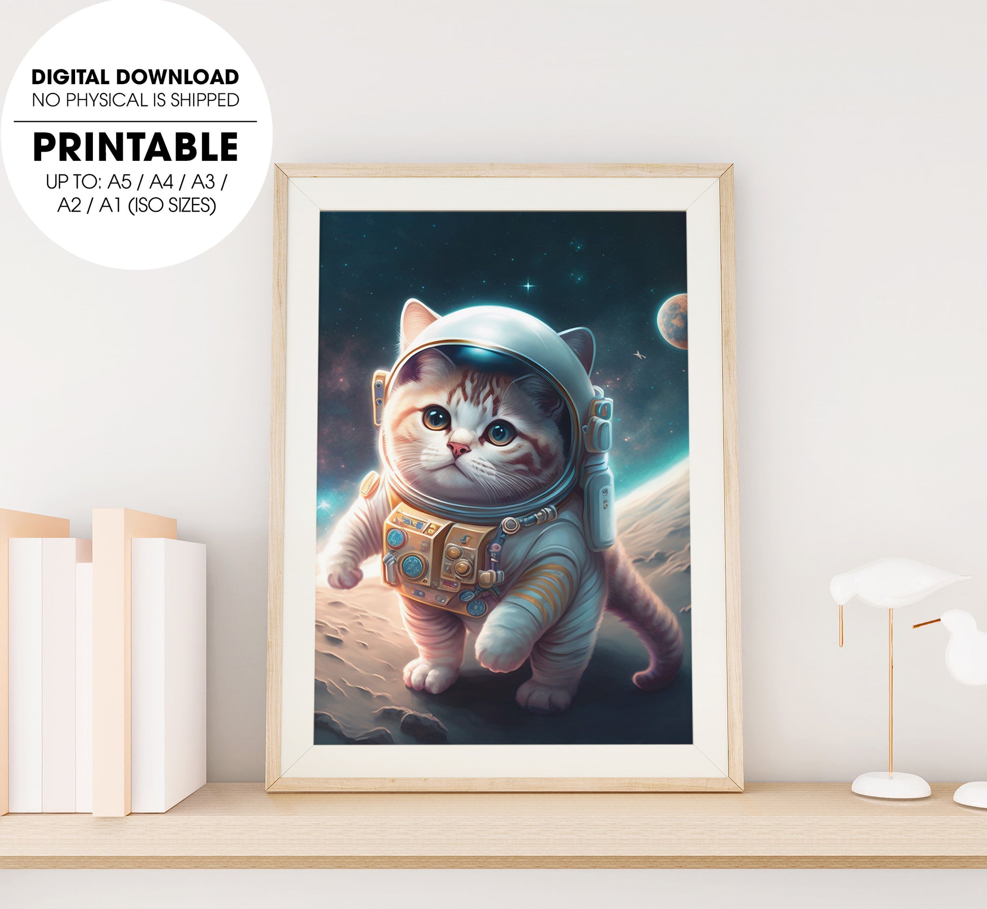 8. Kawaii Space Cat With His Cosmonaut Suit, Traveling Around A Star, Poster Design, Printable Art