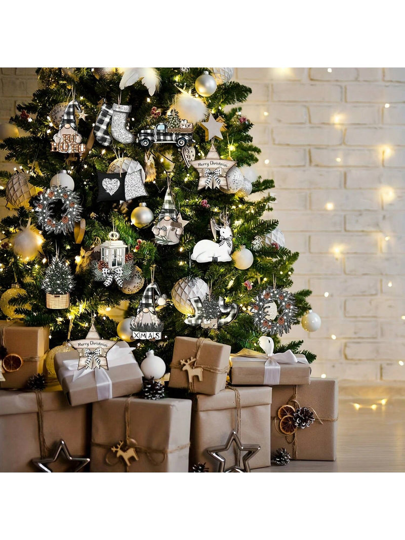 Enhance your holiday decorations with our Rustic Charm 24-piece Christmas Wooden OrnamentsSet. Each ornament features a stylish buffalo plaid design, adding a cozy touch to your tree. Made from high-quality wood, these ornaments are durable and long-lasting. Create a charming and festive atmosphere with this beautiful set.