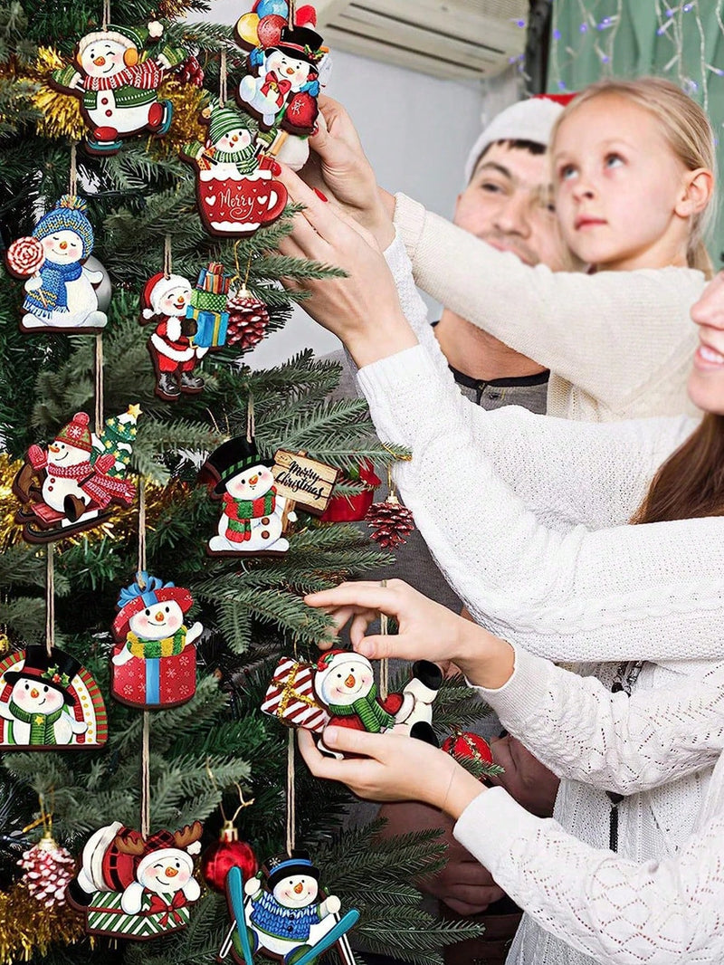 Add a whimsical touch to your holiday decor with the Festive Cheer Wooden Snowman OrnamentSet. This 24-piece set features charming snowman designs made from durable wooden material. Spread the holiday joy with these festive ornaments that will bring a cheerful and warm atmosphere to any space.