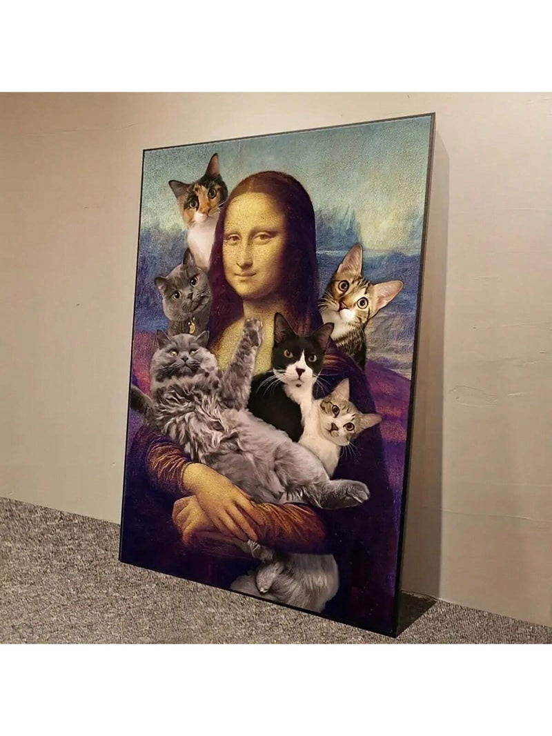 8.Mona Lisa and Cute Cats Canvas Painting.