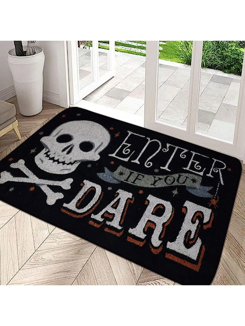 8.Creative Skull Patterned Flannel Halloween Doormat.