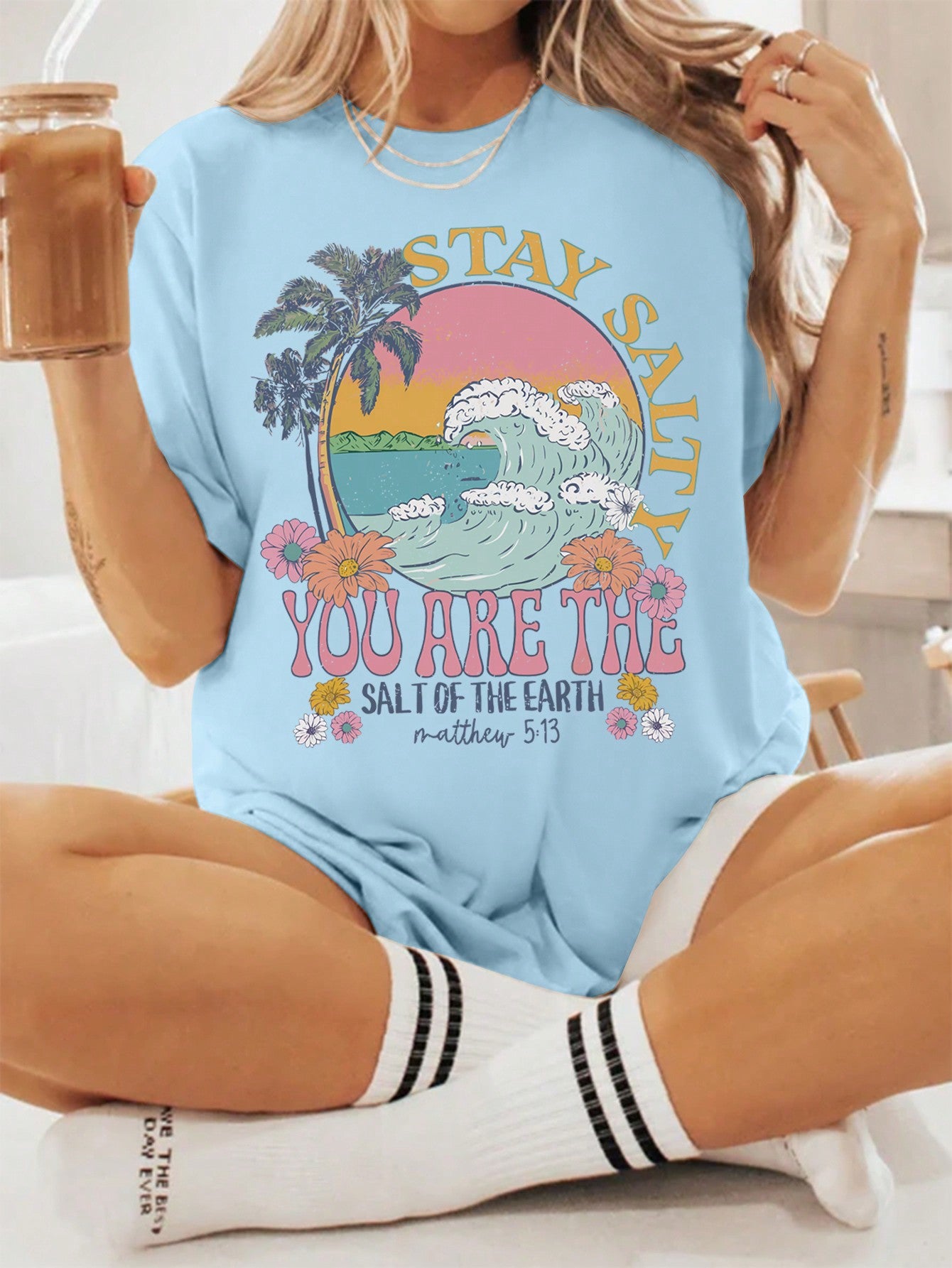 5. Palm Paradise: Loose Fit Summer T-Shirt with Wave Print