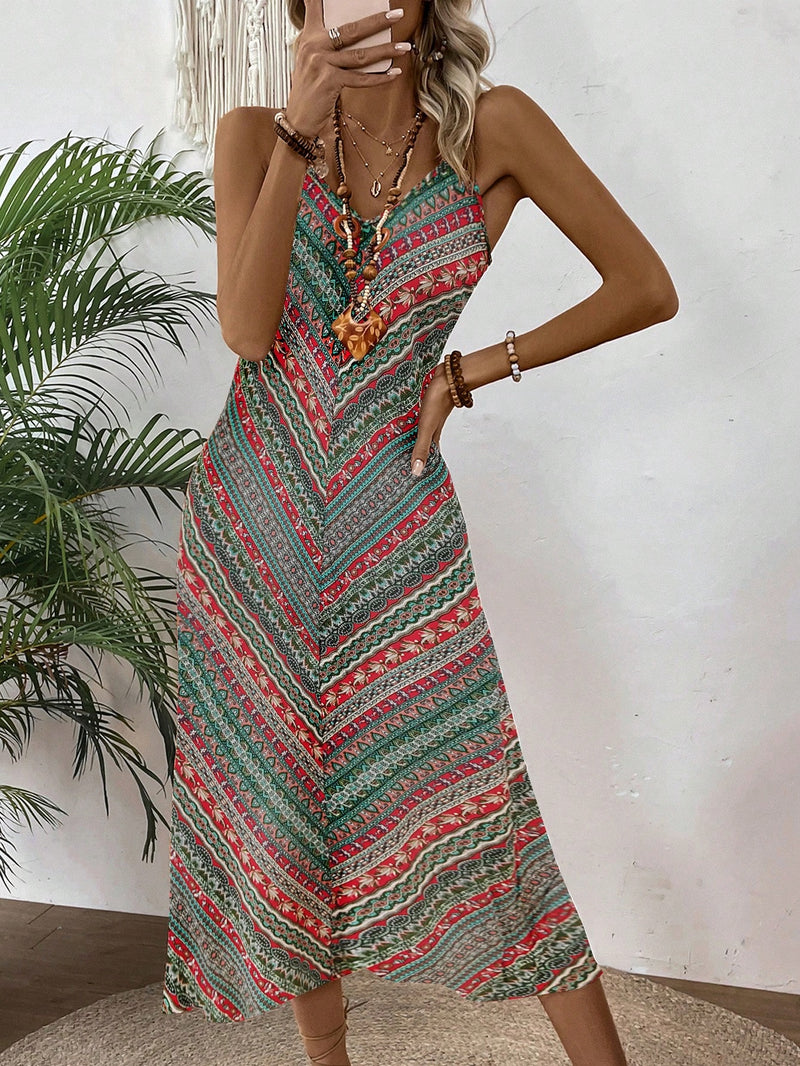 10. Floral Printed V-Neck Spaghetti Strap Maxi Dress