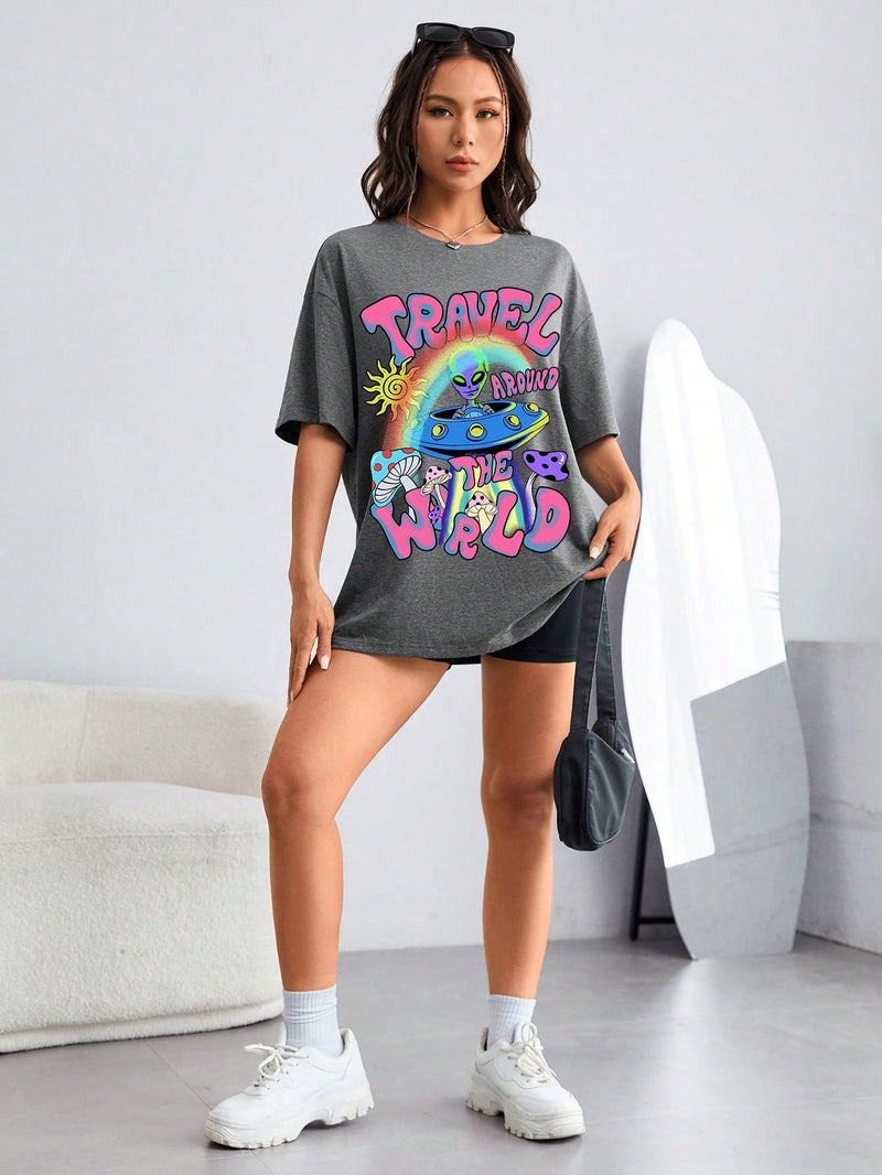 7.Eye-Catching Graphic Drop Shoulder Tee