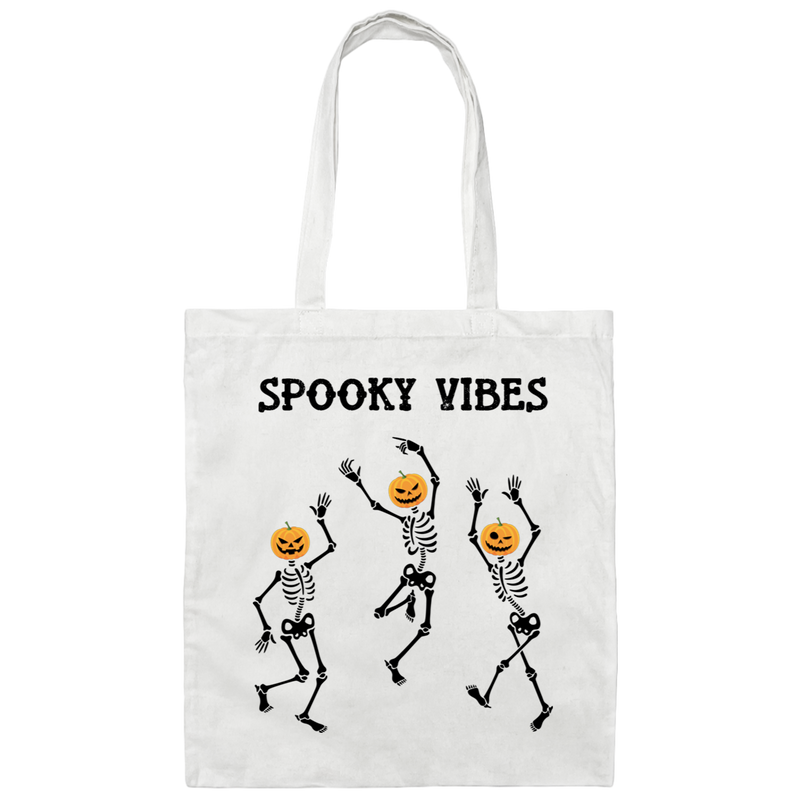 4.Spooky Vibes, Dancing Skeleton, Happy Halloween Canvas Tote Bag