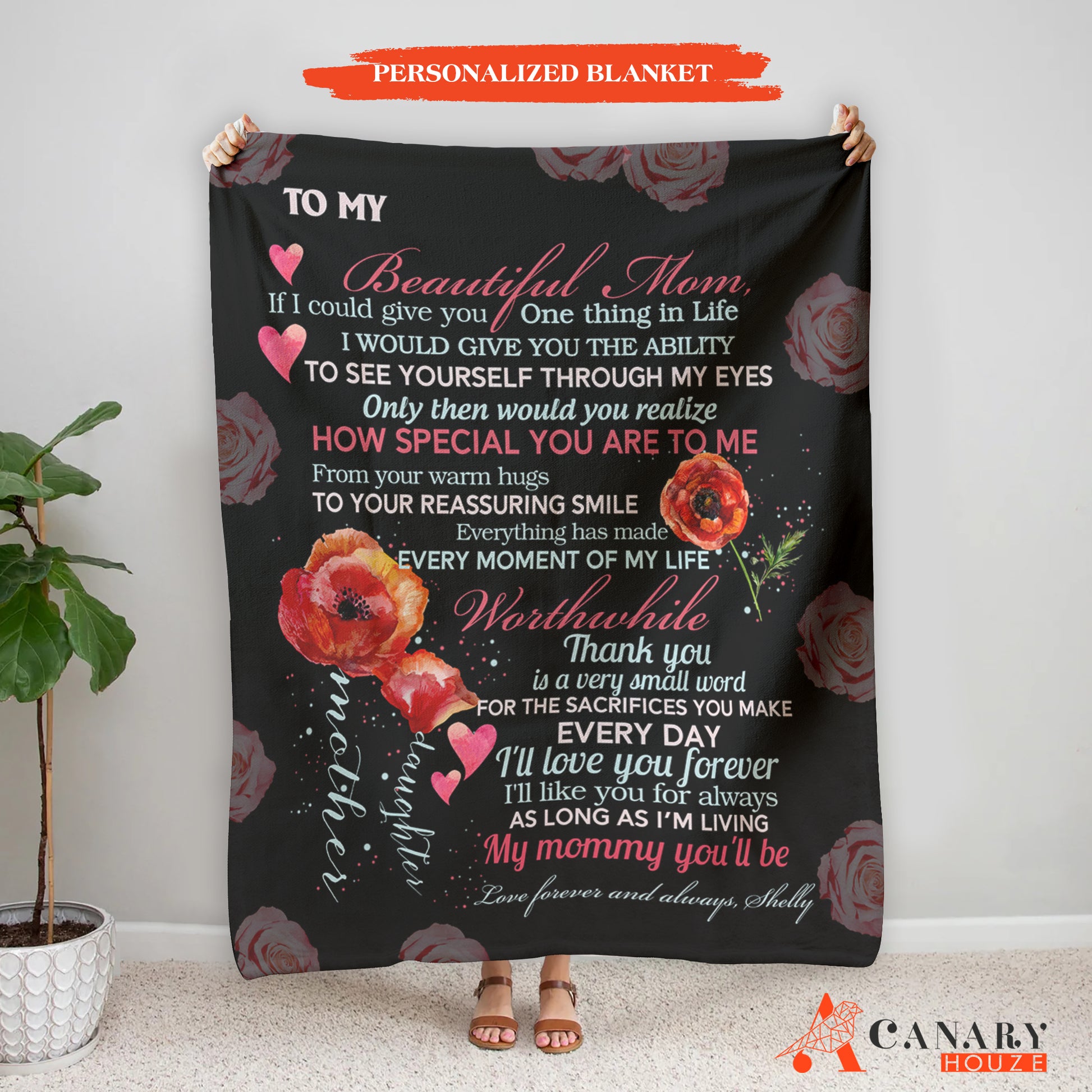 9. Roses Template Blanket, Personalized Blanket Gift, Love Mom, Mother's Day Gift BL101