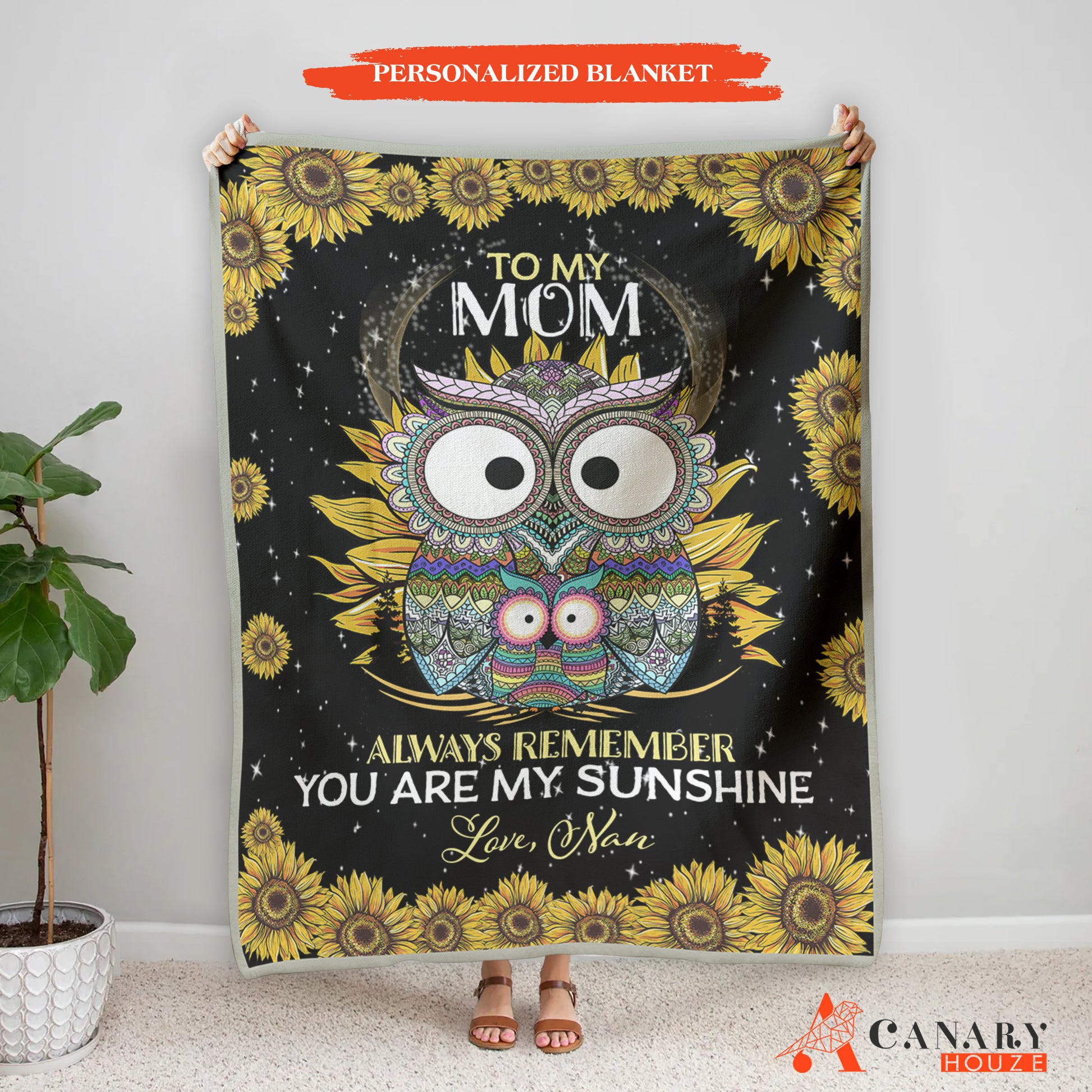 2. Custom Name Blanket Gift, Mother's Day Gifts, Love My Mom, Owl Mandala BL109