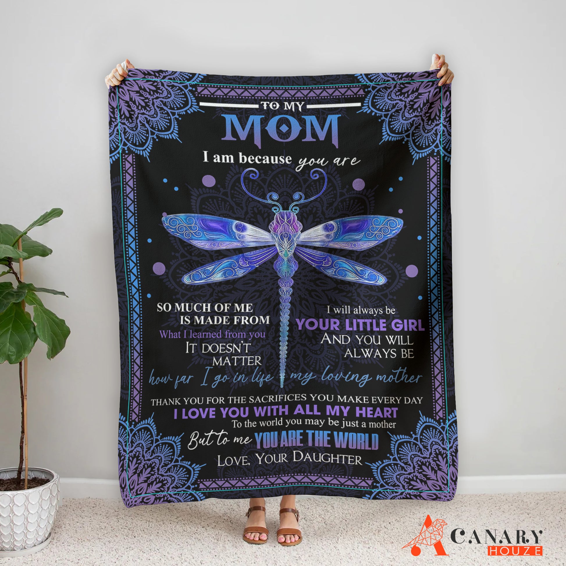 8. Blanket Gift For Mom, Mother's Day Gift, Love My Mom, Blue Mandala Dragonfly BL151