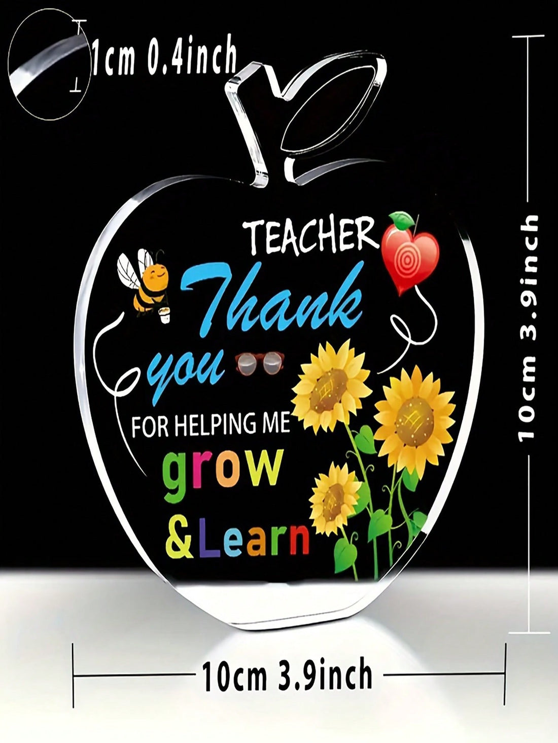 Acrylic Apple Shaped Teacher Appreciation Plaque - Thank You For Helping Me Grow and Learn