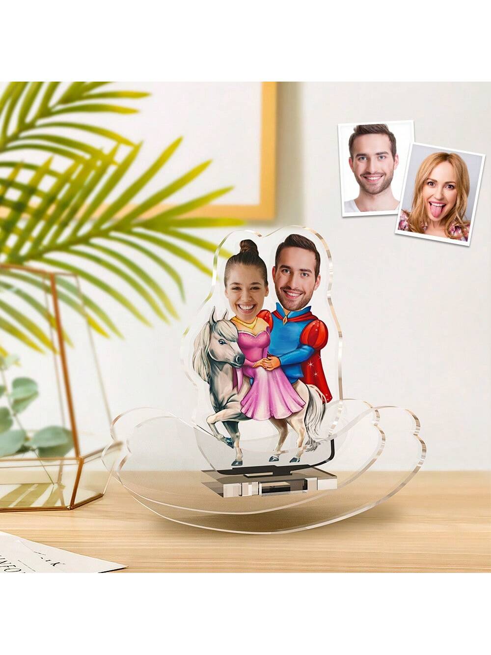 Personalized Couple Shaker Plaque: Customized Cartoon Acrylic Decoration With Face Picture - The Perfect Gift For Any Occasion!