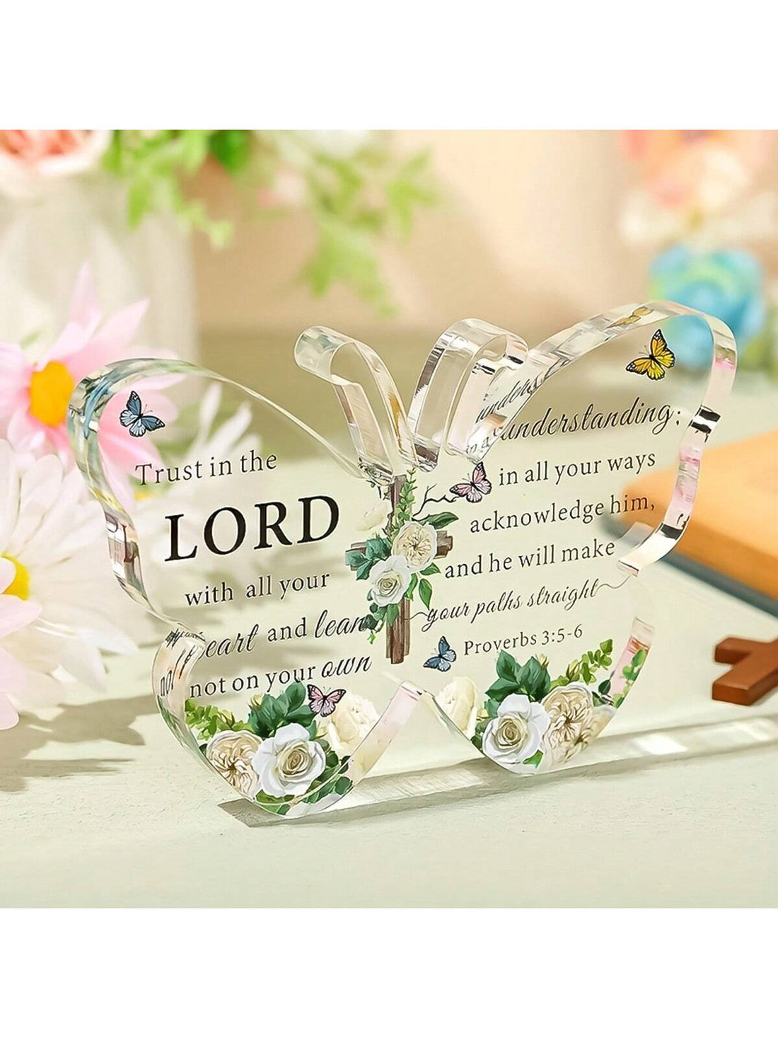 Acrylic Christian Gift: Inspiring Bible Scripture Butterfly Paperweight