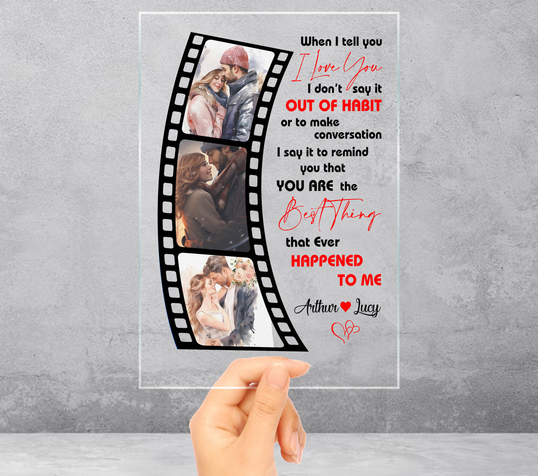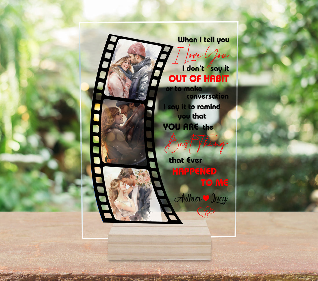 This Acrylic Plaque is a one-of-a-kind gift that can be personalized and customized for any occasion. Made from durable acrylic, this plaque adds a touch of elegance and sentimentality to any space. With its sleek and modern design, it makes for a perfect gift that will be cherished for years to come.