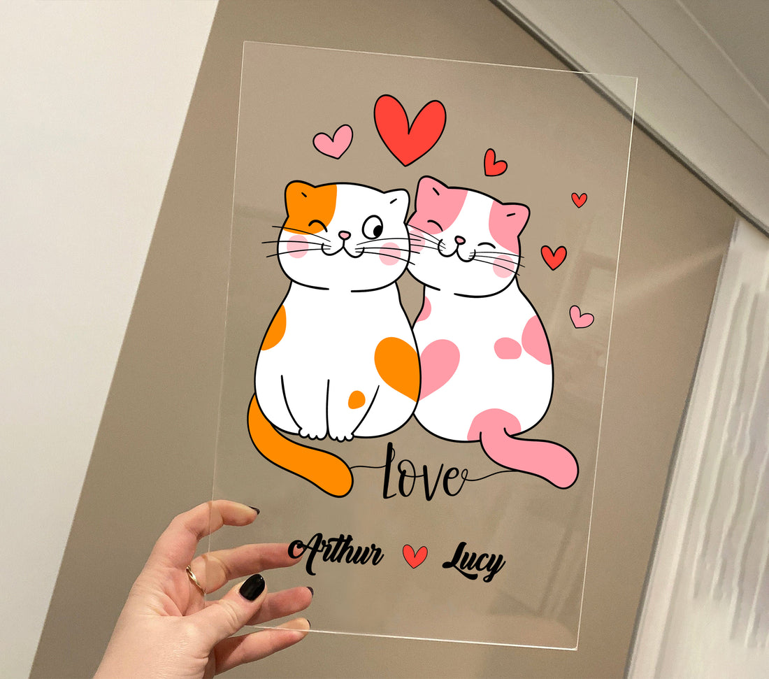 Acrylic-AP003-Personalized Name, Cat Couple, Couple Cat, Love Cat, Valentine Cat