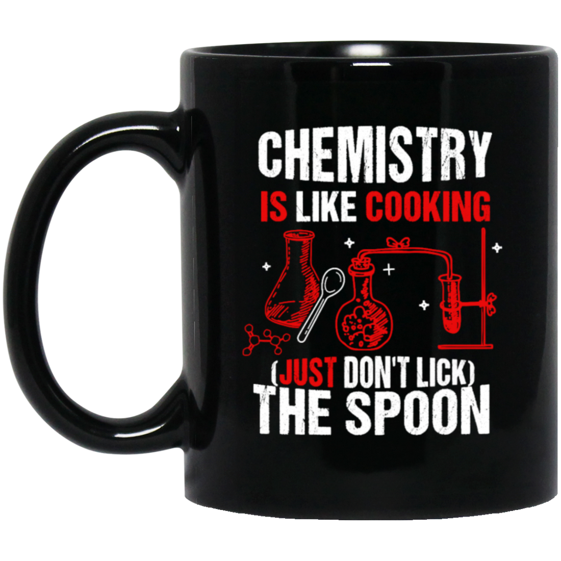 Chemistry Lover, Chemistry Is Like Cooking, Just Don't Lick The Spoon Black Mug