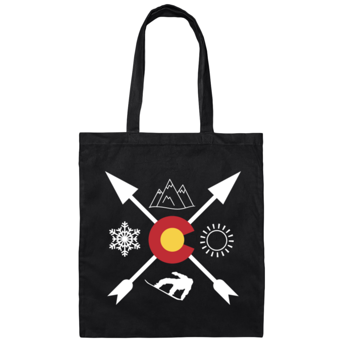 Denver Colorado, Snowboarding Direction, Sun Snow And Mountain Canvas Tote Bag