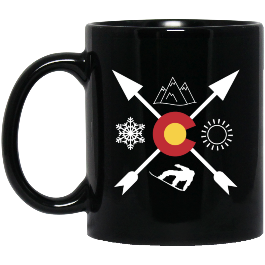 Denver Colorado, Snowboarding Direction, Sun Snow And Mountain Black Mug