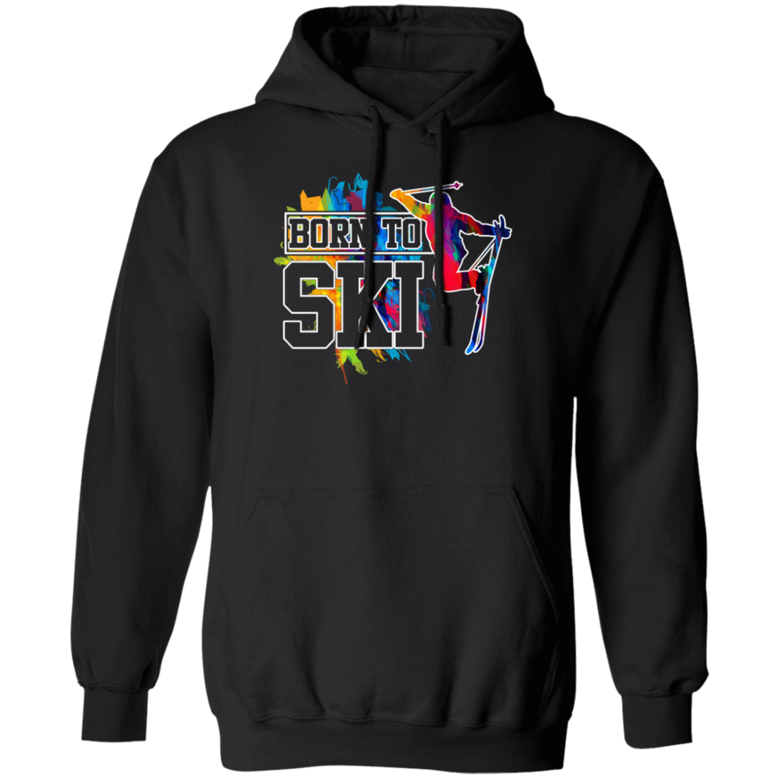Design For Skier Born To Ski Colorful Ski Gift Birthday New Year Day Pullover Hoodie