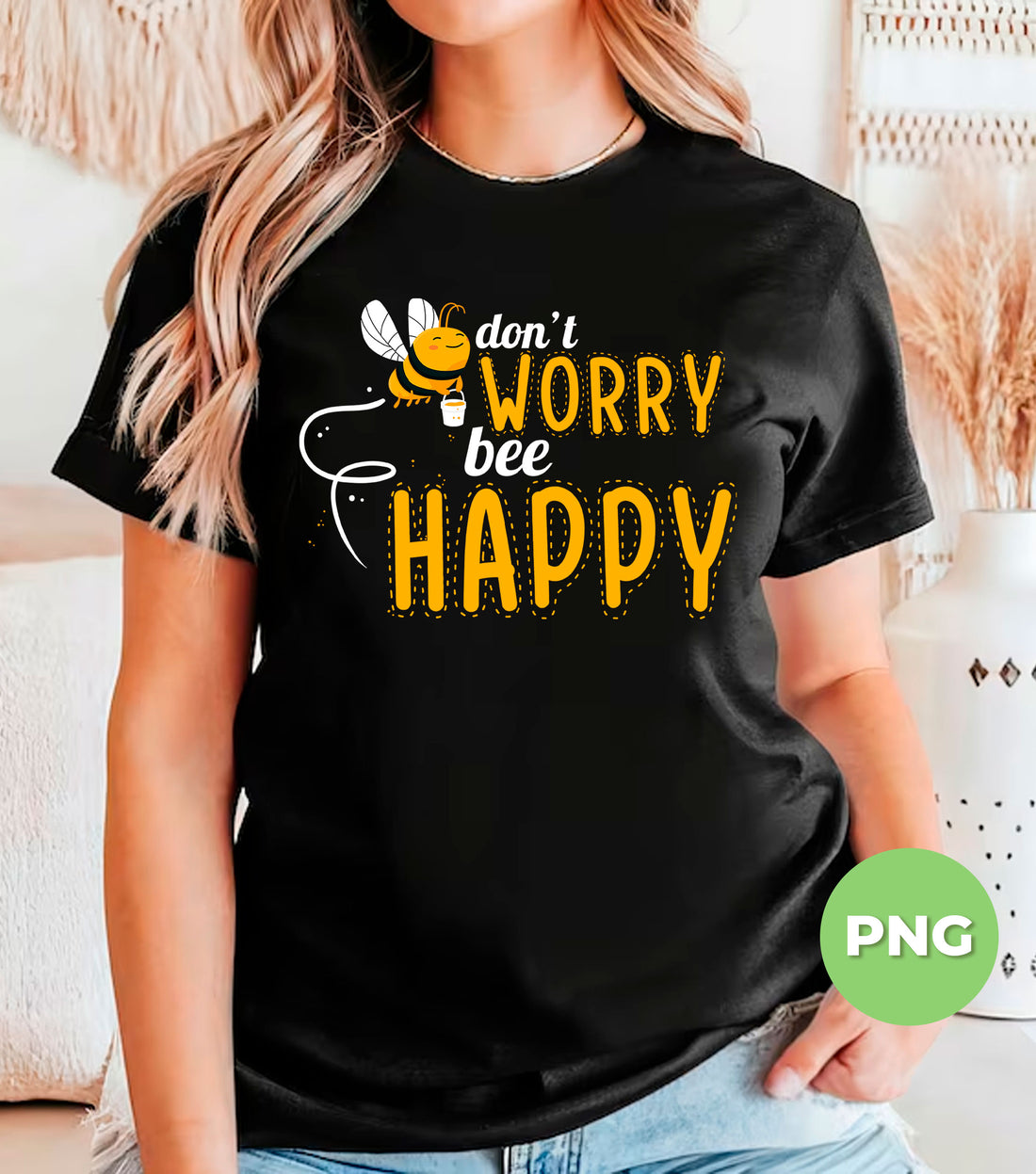 Bring a touch of sunshine to your designs with the Don’t Worry Bee Happy PNG!...