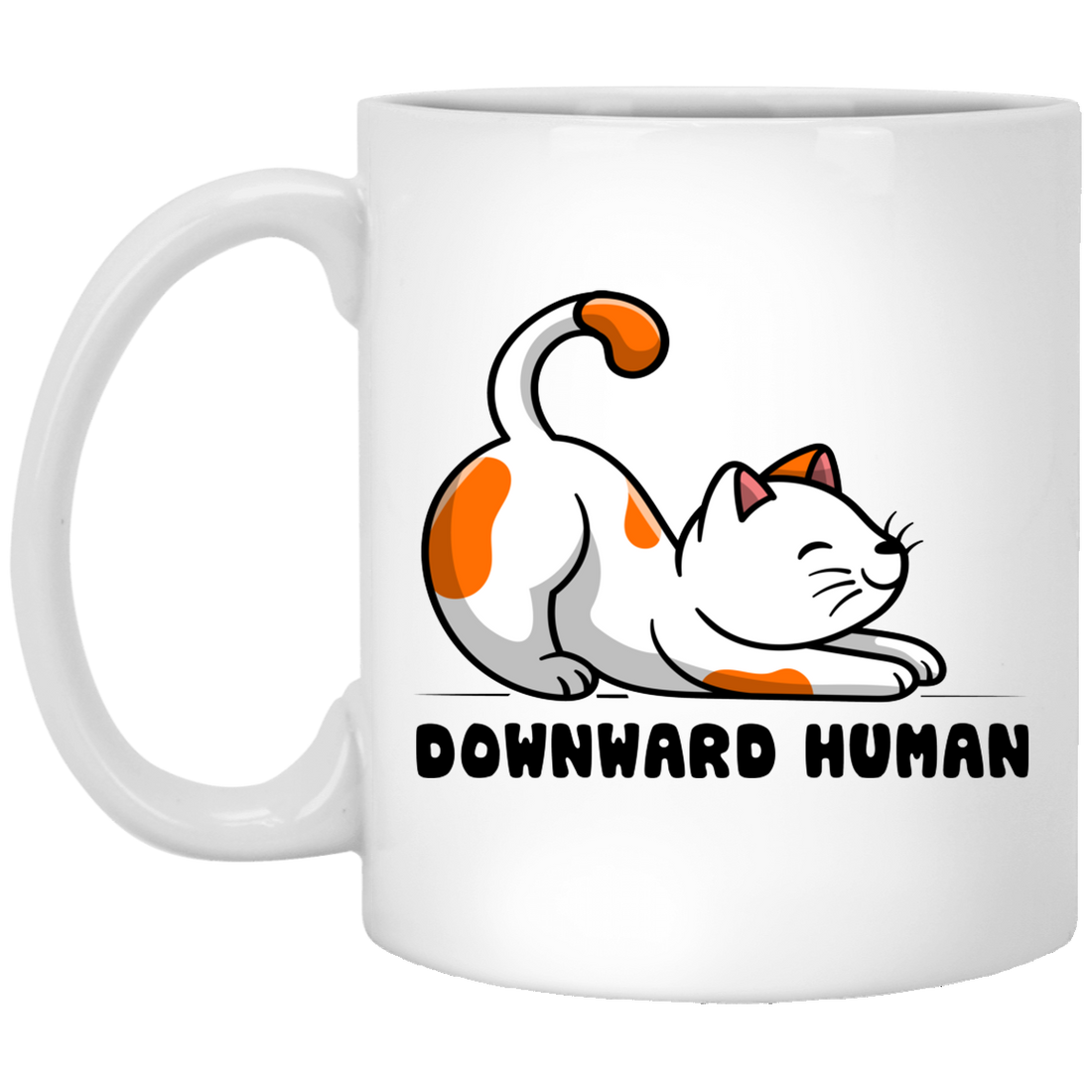 Downward Human, Cute Meow, Yoga Cats White Mug