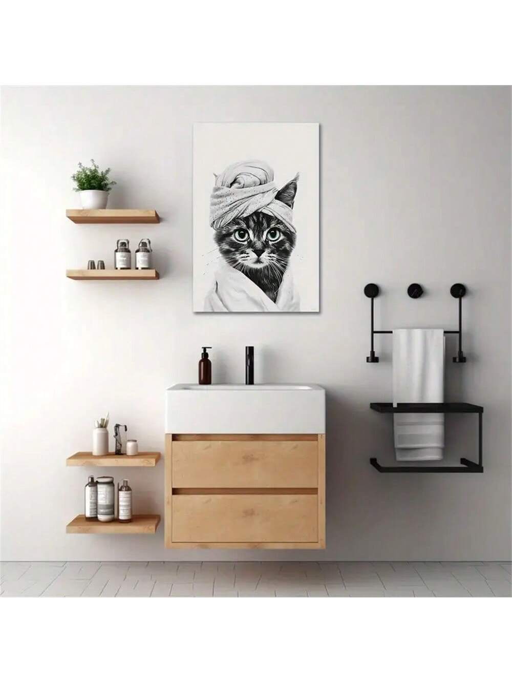 Epic Oil Painting Of A Black Cat Riding A Great White Shark In Ocean