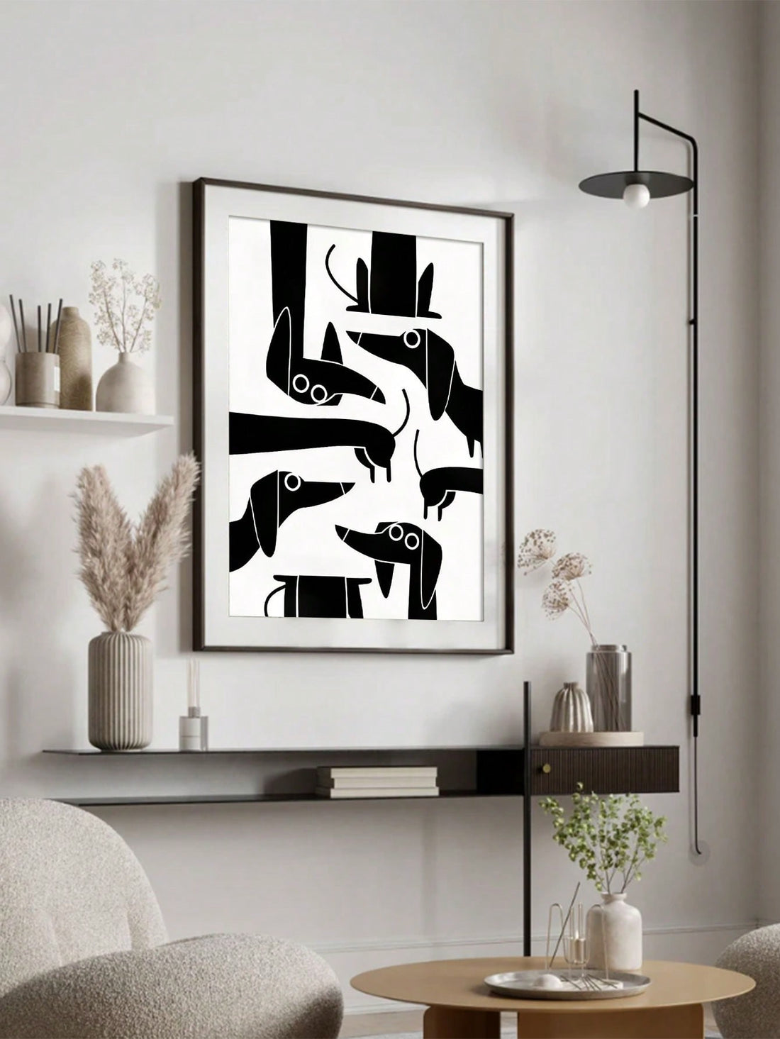 A cheerful and heartwarming digital portrait featuring a diverse group of six dogs (including a...