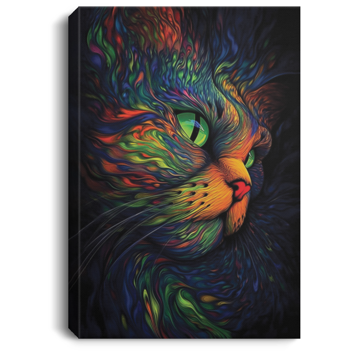 Hyperdetailed Cat, Cat Have A Large Green Eyes, Cat Psychedelic Art Canvas