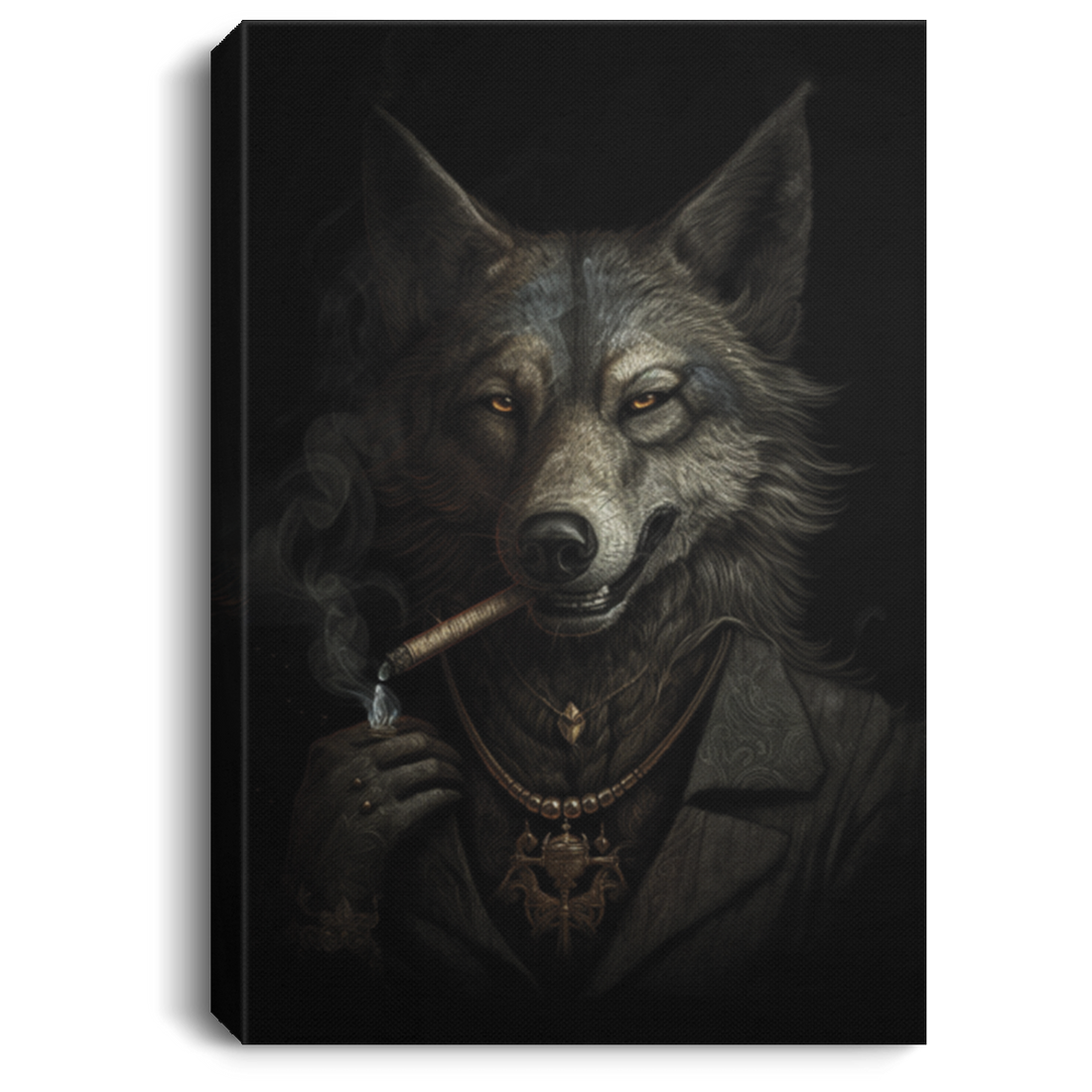 Dark Wolf With Cigarette In Mouth, Cool Wolf Poster, Mafia Wolf Canvas
