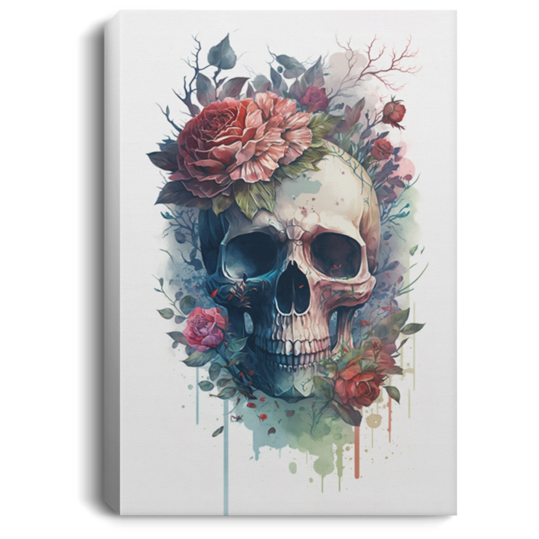 Skull With Roses In Watercolor Style, Anatomy Skull With FloralDecorativel