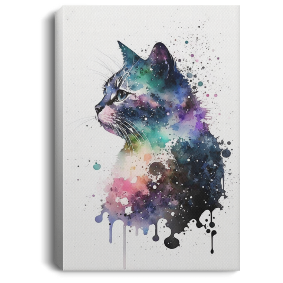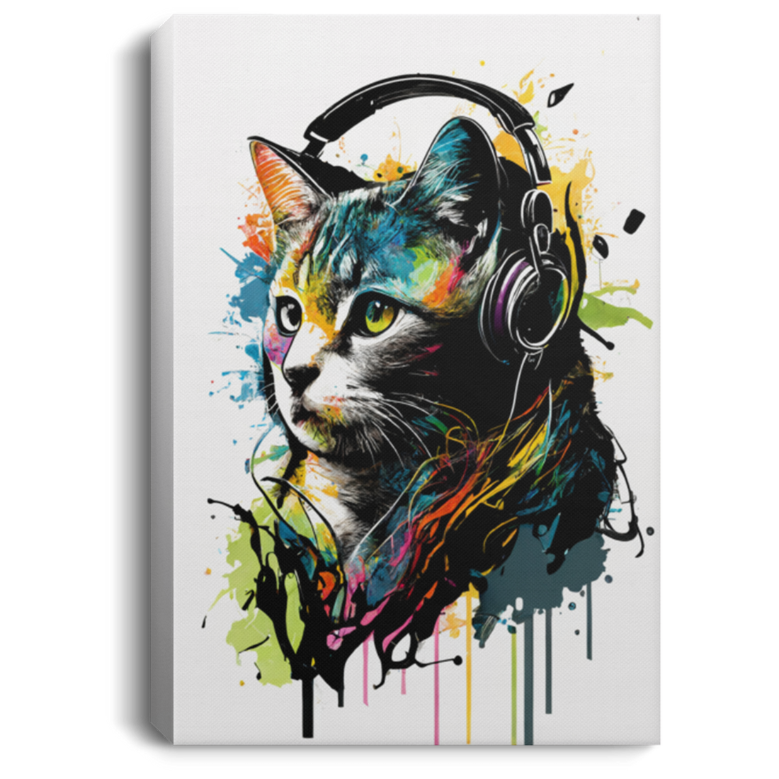 Cat Listening To Music With Headphones, Cat Watercolor, Cat With ColorFull