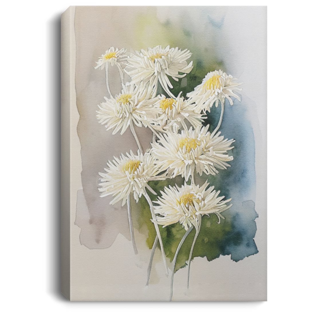 A Bunch Of Blooming Chrysanthemum, Watercolor White Flower