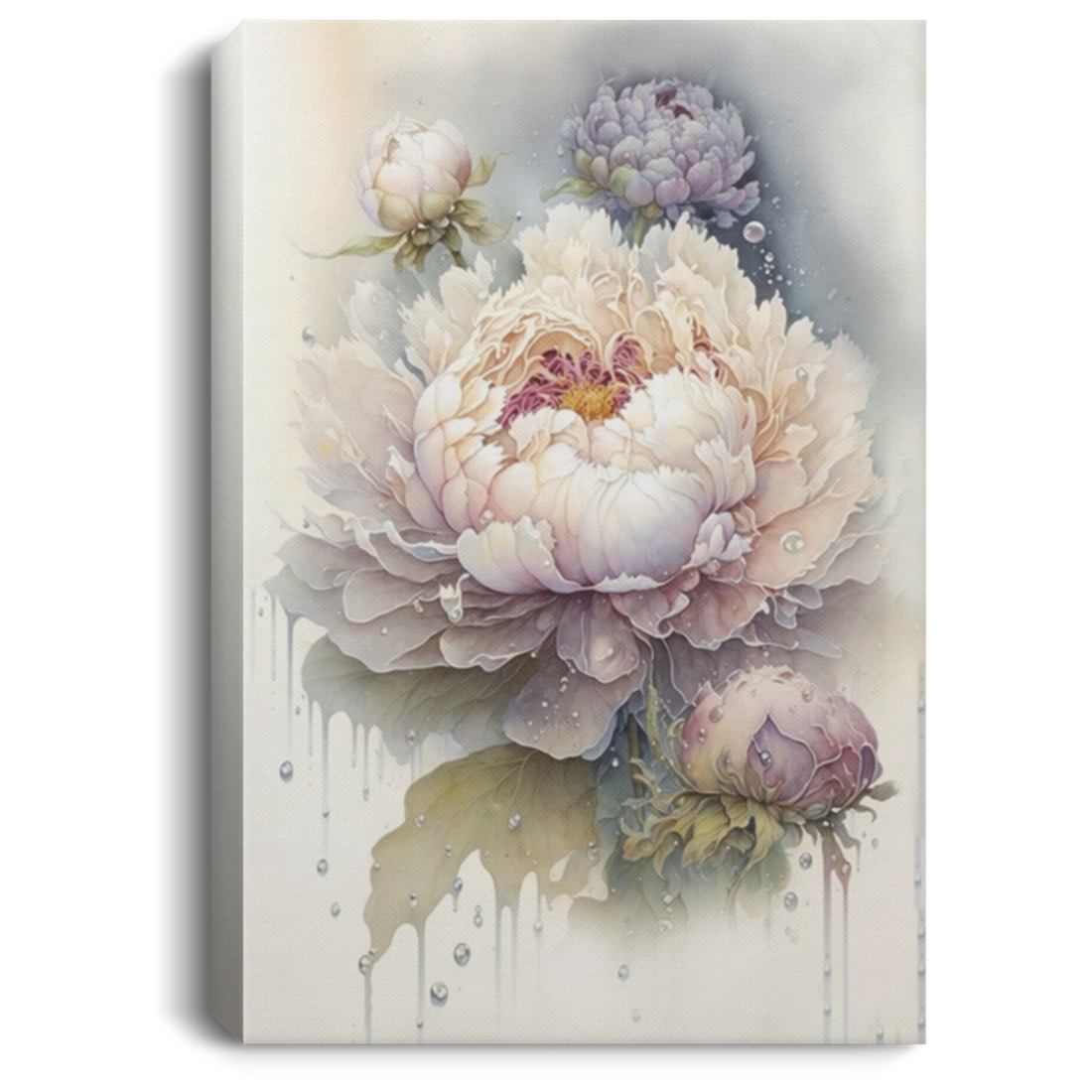 Peony Flowers Watercolor Fresh, Floral Watercolor, White Peony With Dew Drops