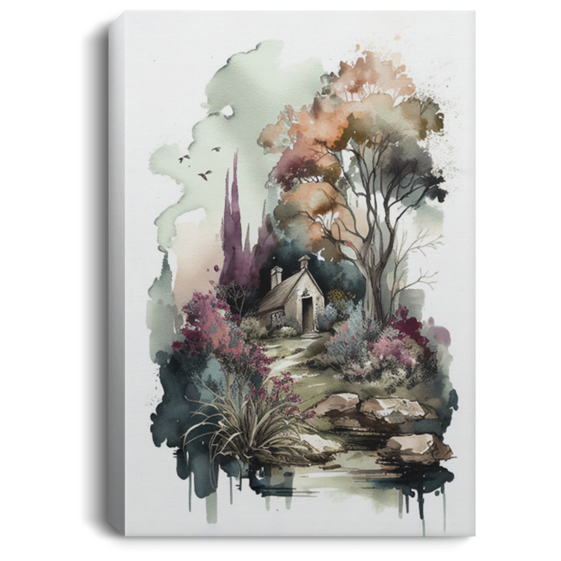 Birds And Trees Canvas, Wild Landscape Canvas, Watercolor Art Decor