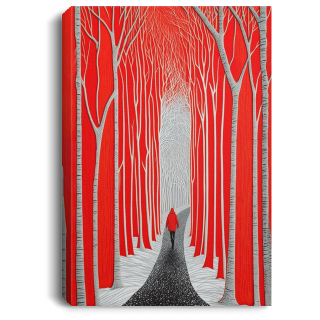 Alone In This Jungle Canvas, Red Forest, Red Forest Painting With Simple Style