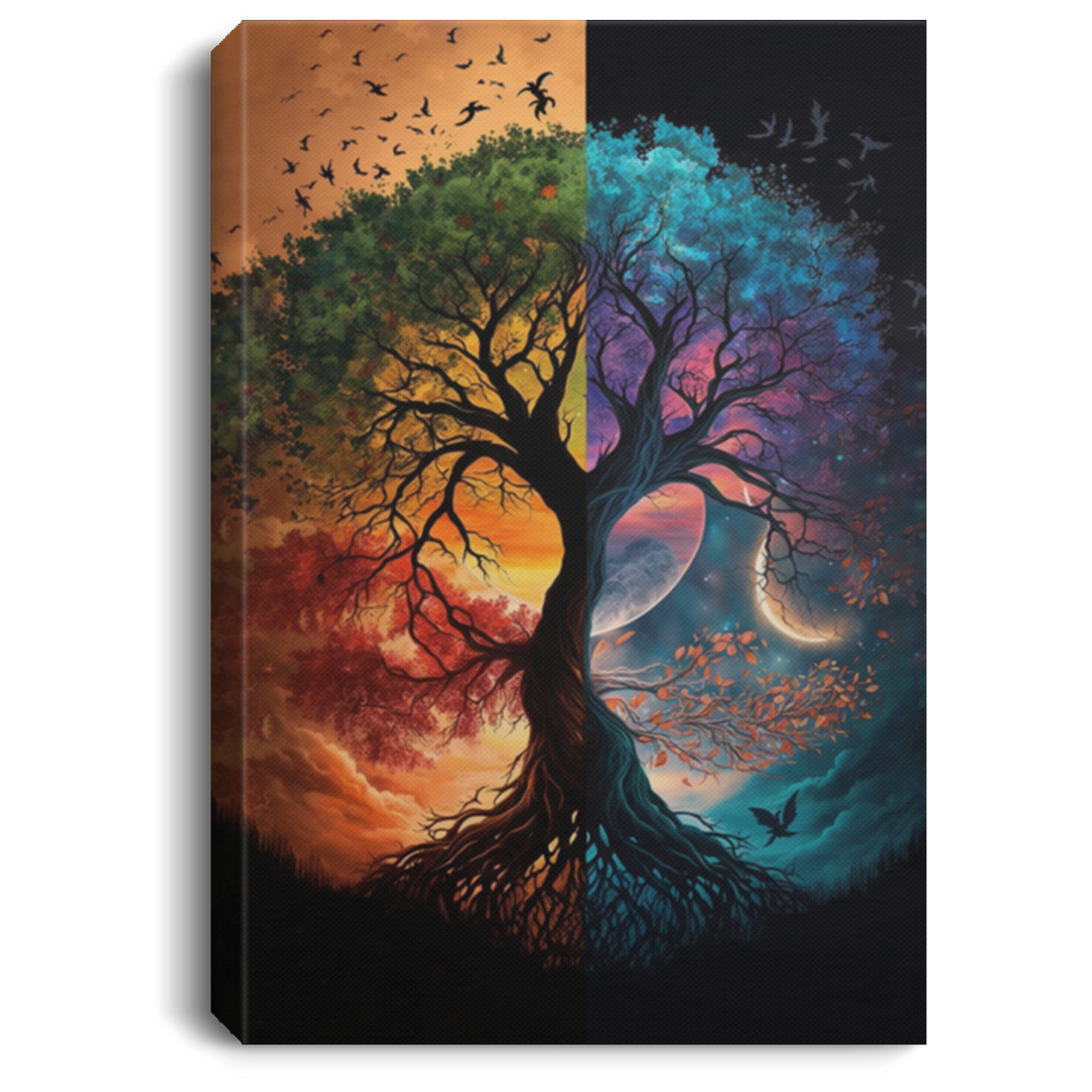 A Beautiful Painting With Tree Of Life Canvas, Picture Of Day And Night, Watercolor Tree