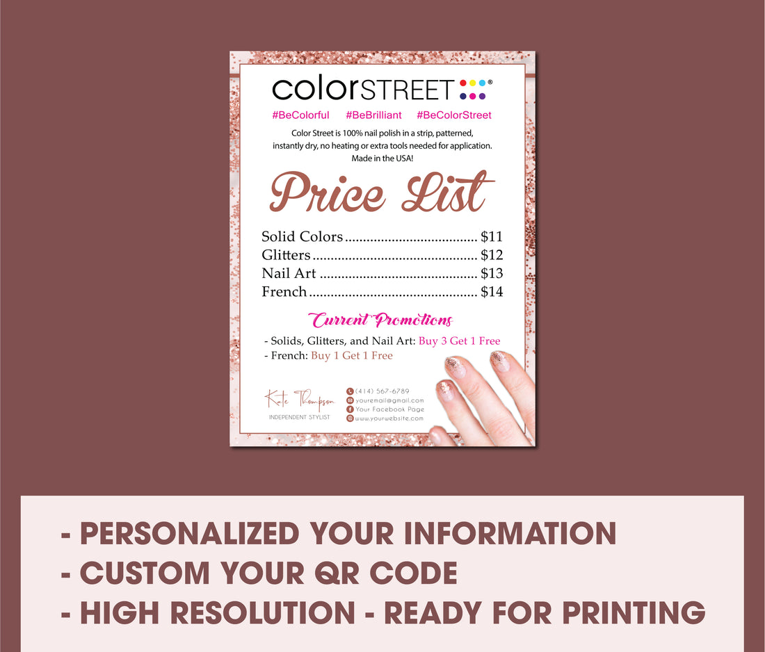 Glitter Color Street Marketing Bundle, Personalized Color Street Cards CL180. This listing is for DIGITAL...
