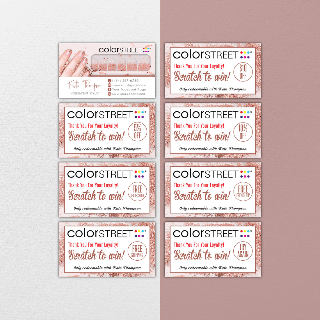 Color Street Scratch To Win Card, Personalized Color Street Business Cards CL180