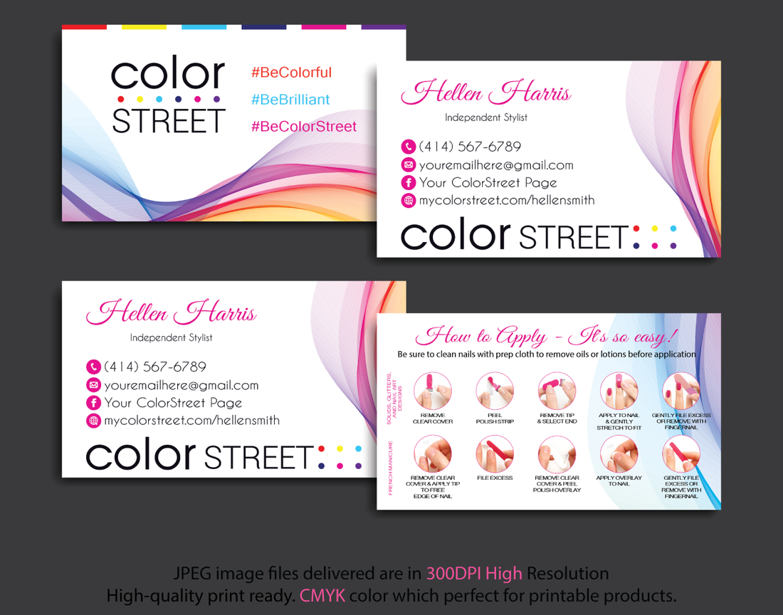 Color Street Cards Design, Personalized Color Street Business Cards,Color Street Marketing Bundle. We personalized your card and send ready-printing file to you. So you can print as many as you want, anywhere you choose.