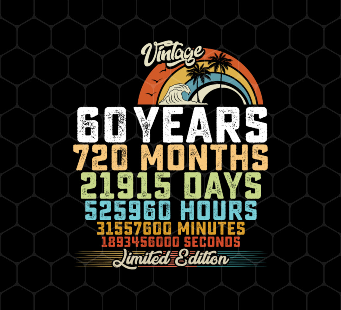 Birthday Gift, 60 Years Birthday Gift, 720 Months Gift, Vintage 60th, Png Printable, Digital File