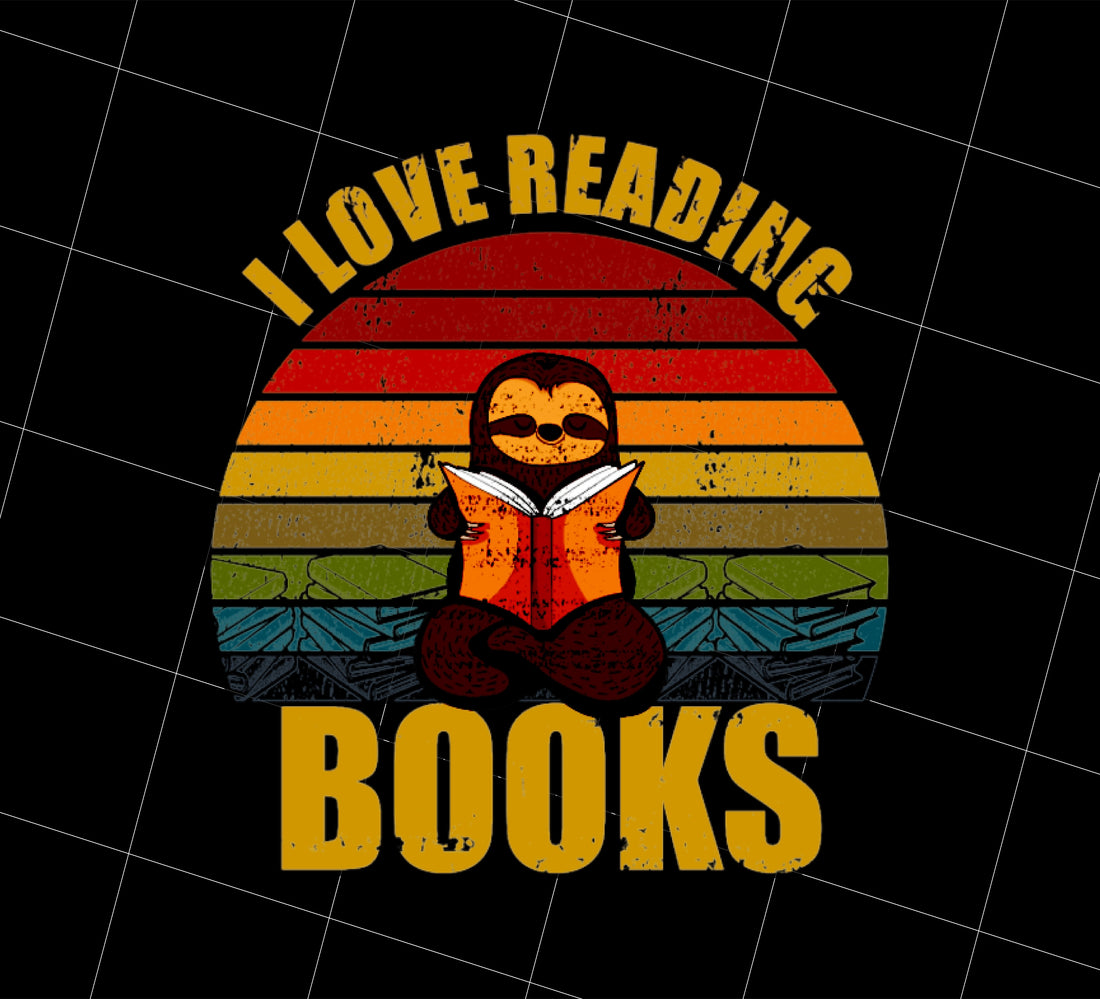 Sloth Lover Png, I Love Reading Books Png, Retro Bookworm Png, Png Printable, Digital File