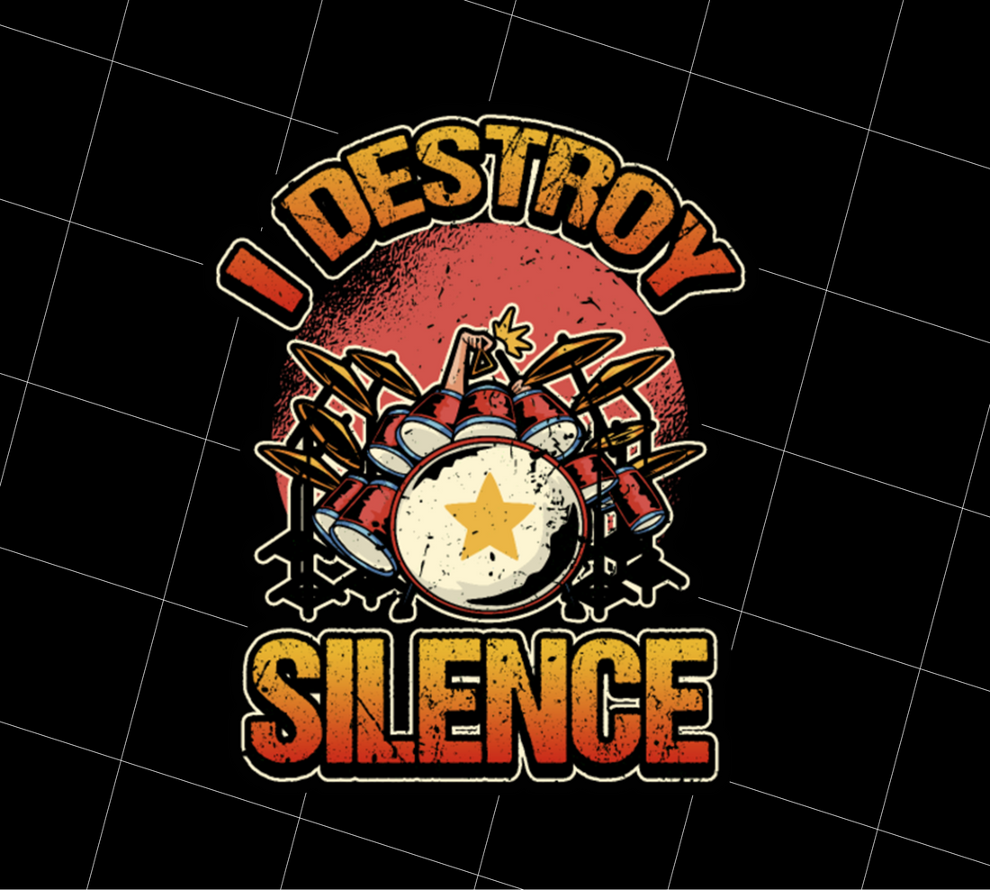 Funny Music Instrument Drummer, Distroy Silence Please Gift Png, PNG Printable, DIGITAL File