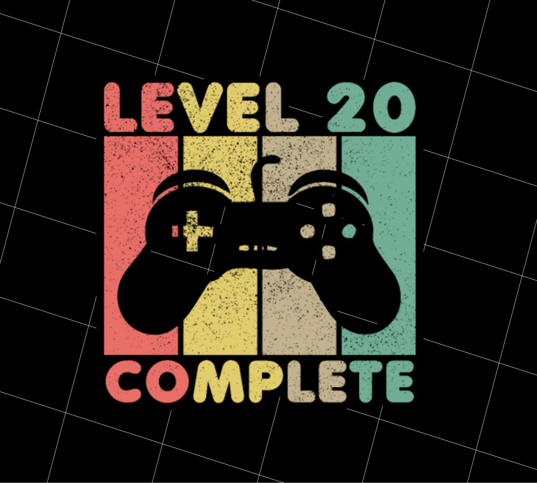 Gamer Level 20 Years Old Gift, Birthday Gift Retro, Game For 20th Gift, PNG Printable, DIGITAL File